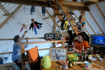 Implanté dans un village d’Alsace en pleine nature, le lieu sert de champ d’expérience, d’ espace de répétition, d’atelier de fabrication, de lieu de stockage, lieu convivial on l’on peut recevoir des artistes en résidence faire des sessions de formation de danse aérienne, défini comme espace de création partagée.